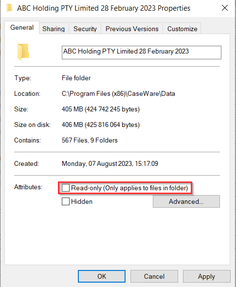 Go to the General Tab. Un-tick the box next to “Read-only (applies to files and folder)”.